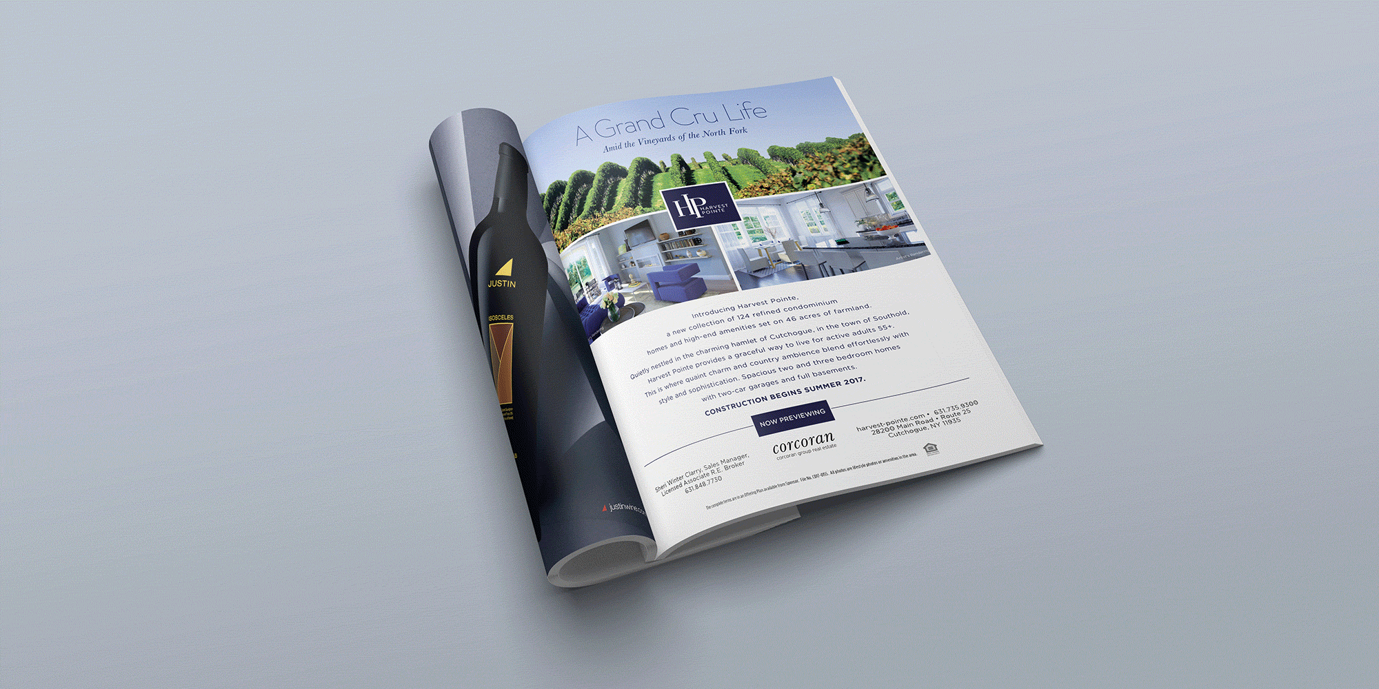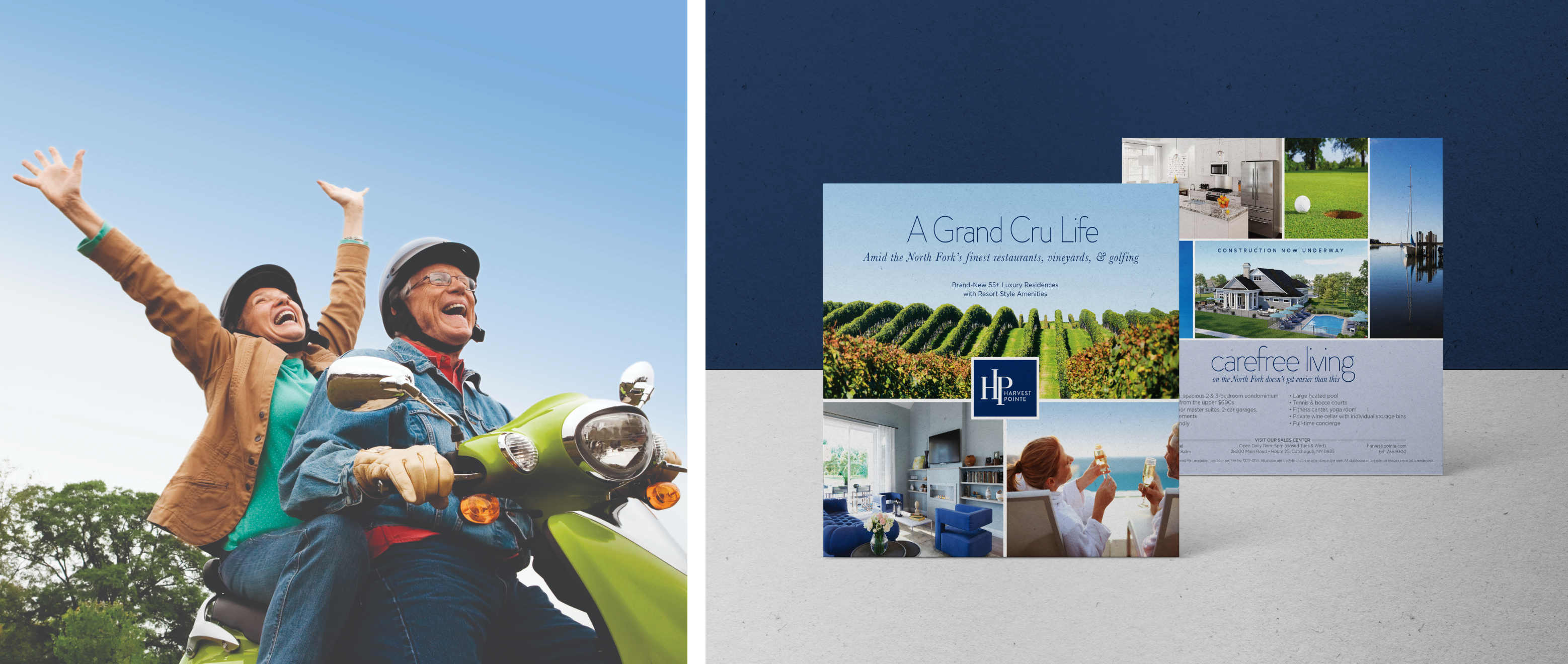 We highlighted Harvest Pointe’s unique blend of farmland, vineyards, waterways, and luxury modern homes. Original local photography showcased the setting, positioning this North Fork community as down-to-earth yet close to NYC.